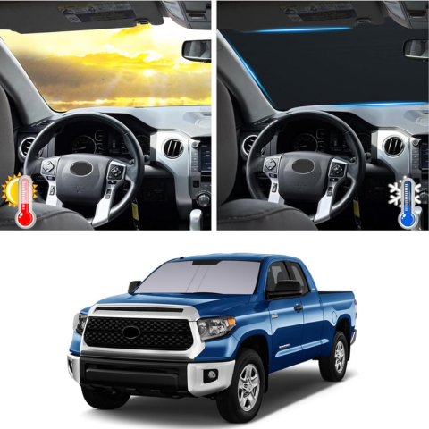 Diese faltbare Sonnenblende, maßgeschneidert für die Windschutzscheibe der Toyota Tundra 2014-2021, bietet optimalen Schutz gegen Sonnenstrahlen und reduziert die Hitze im Inneren des Fahrzeugs. Ihr praktisches Design ermöglicht eine schnelle Installation und einfache Aufbewahrung, während es die Lebensdauer Ihres Armaturenbretts verlängert.