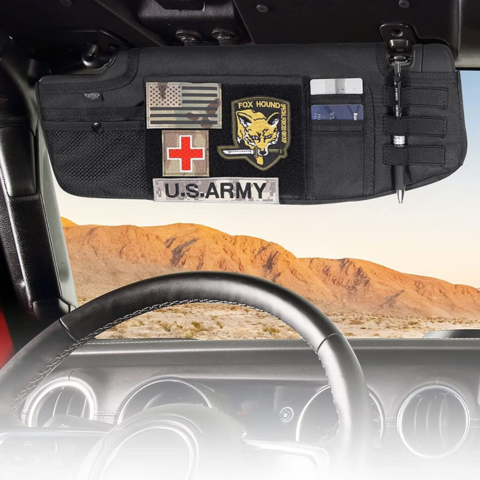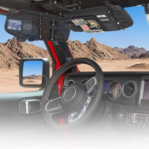 Progettato appositamente per i Wrangler JL e JT prodotti tra il 2018 e il 2023, questo organizzatore per parasole ti consente di mantenere i tuoi accessori essenziali perfettamente ordinati e facilmente accessibili. La sua installazione rapida, senza attrezzi, e il suo design discreto si integrano armoniosamente nell'abitacolo.