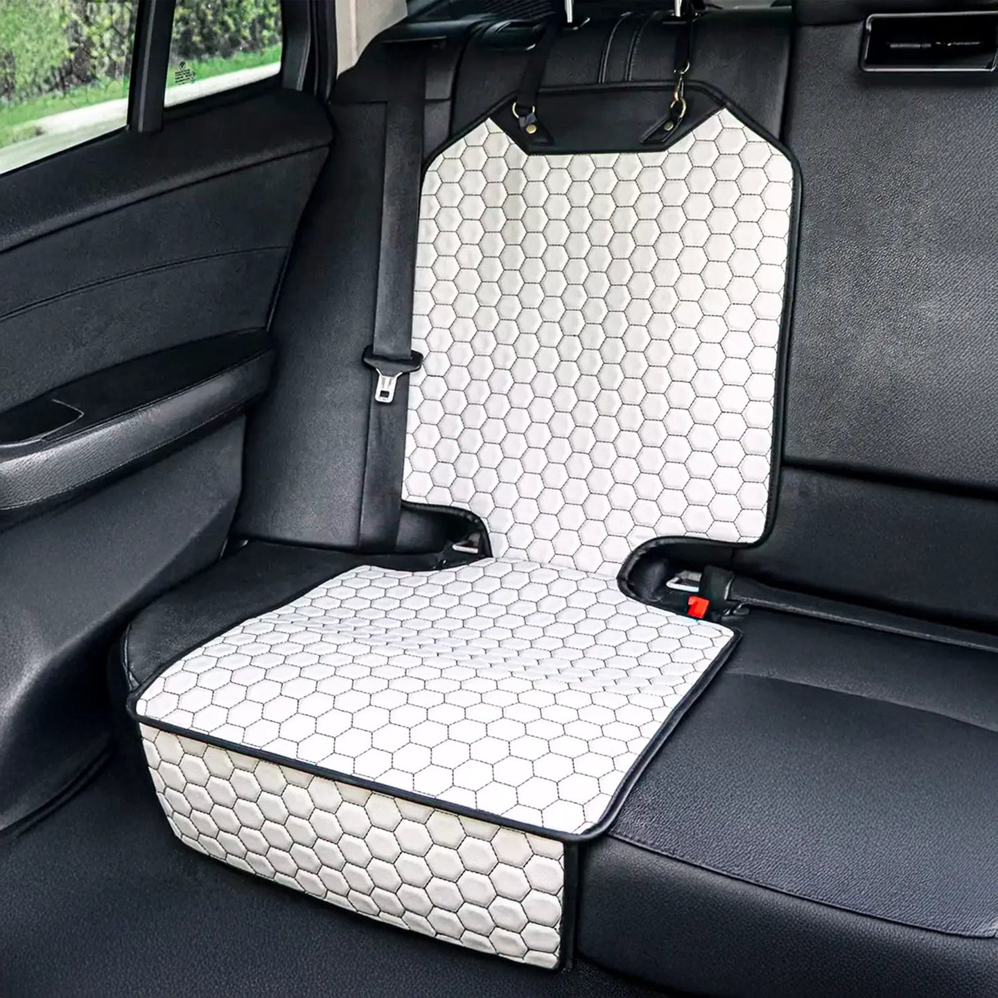 Denna bilstols skyddsmatta erbjuder ett effektivt skydd mot fläckar och spill. Dess vita hexagonala design ger en touch av elegans till interiören i ditt fordon. Lätt att installera, den passar de flesta fordon.